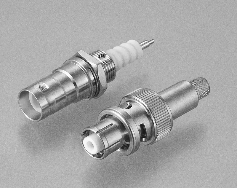 SHV形コネクタは特性インピーダンス50Ωに設計された小型のコネクタで、φ6mm程度の仕上り寸法をもつ同軸ケーブルに適します。耐電圧が5kVと高く、高電圧用途に適し、バヨネットロック方式の接続により、着脱が簡単に行える、操作性に優れたコネクタです。